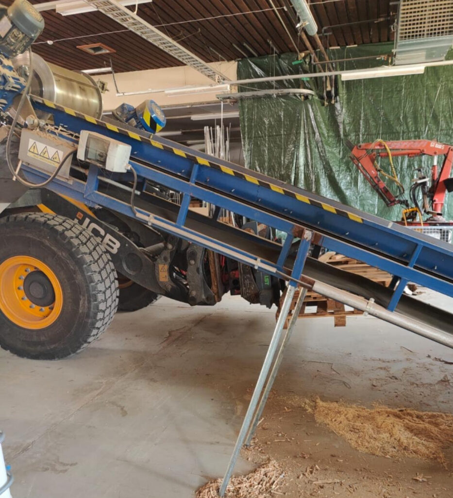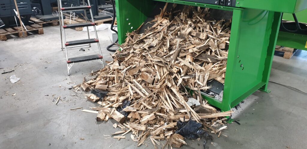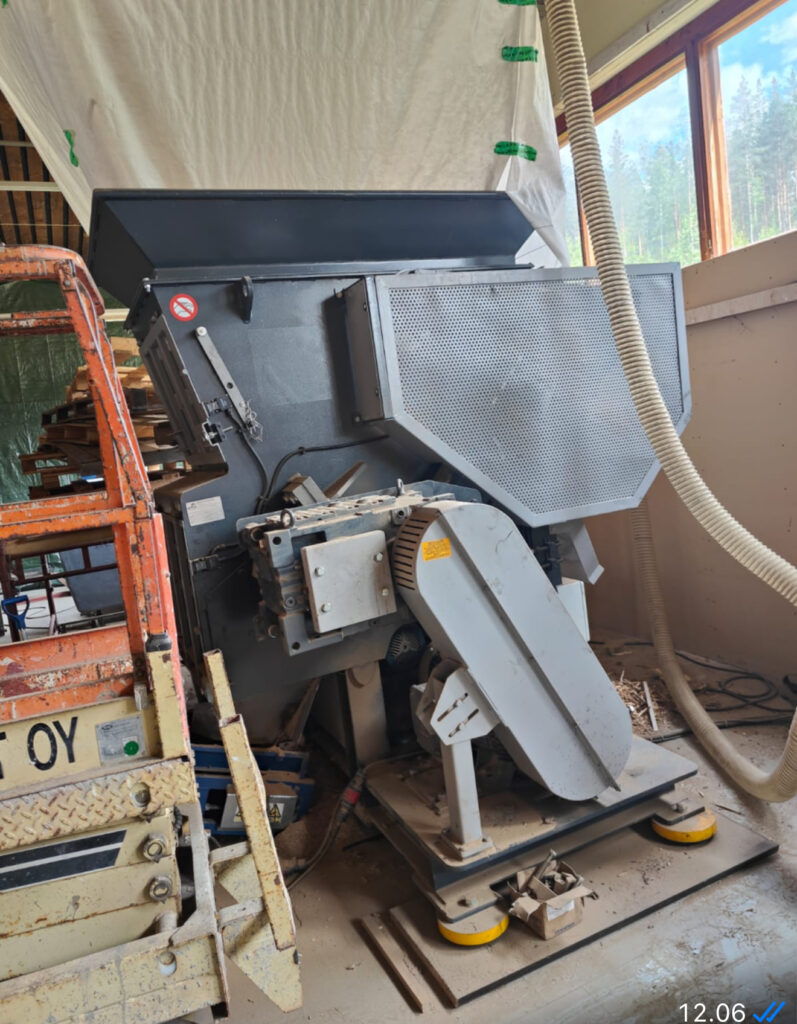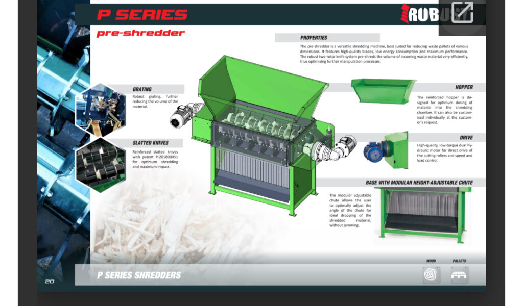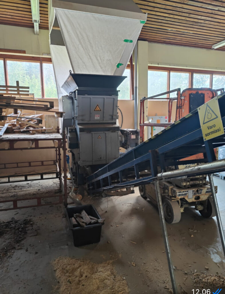 PALLET CRUSHING LINE, 2 Shredder, 2 conveyors with magnetic drum for nail removal. Used Amis 200 hours and Robust only 30 hours. Contact us